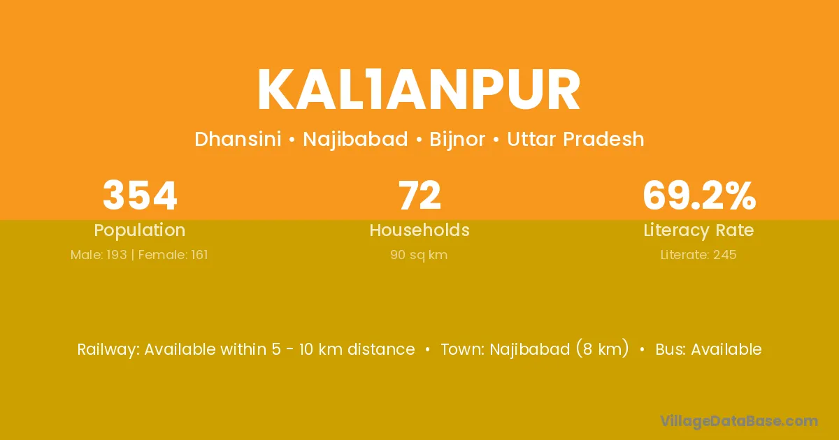 Najibabad (8 km) is the nearest town to Kal1anpur village for major economic activities and is located approximately 8 km away.
