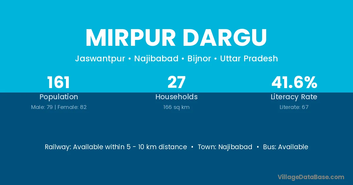Mirpur Dargu village has a total population of 161 people, of which 79 are males and 82 are females.