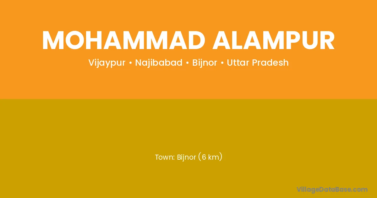 Bijnor (6 km) is the nearest town to Mohammad Alampur village for major economic activities and is located approximately 6 km away.