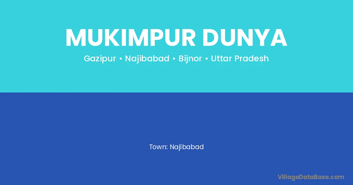 Najibabad is the nearest town to Mukimpur Dunya village for major economic activities