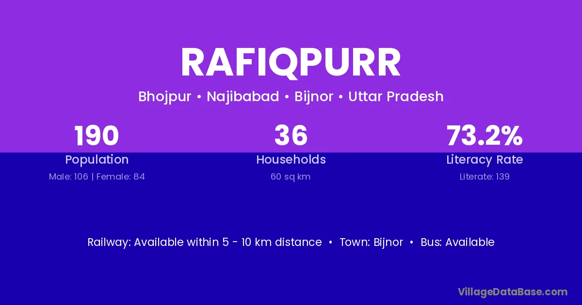 Bijnor is the nearest town to Rafiqpurr village for major economic activities