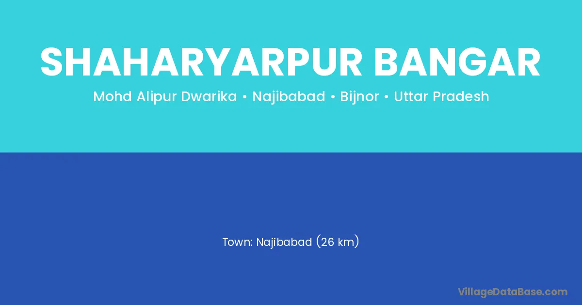 Najibabad (26 km) is the nearest town to Shaharyarpur Bangar village for major economic activities and is located approximately 26 km away.