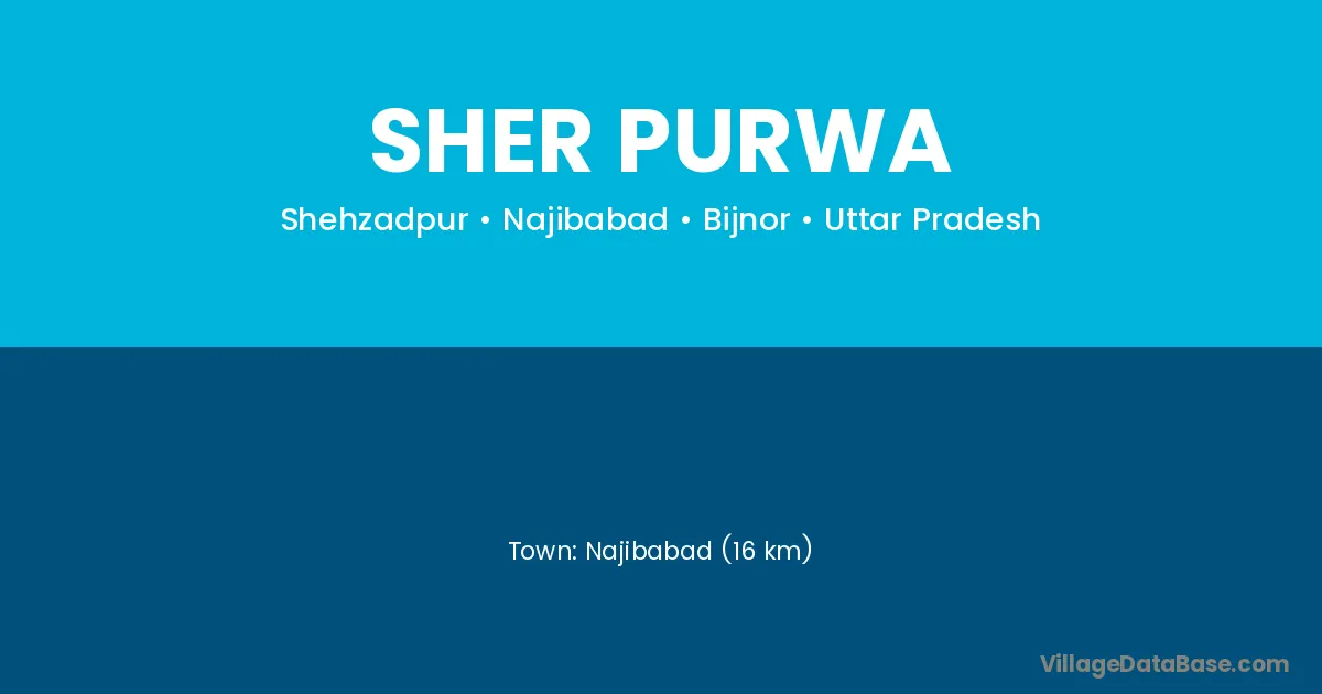 Najibabad (16 km) is the nearest town to Sher Purwa village for major economic activities and is located approximately 16 km away.