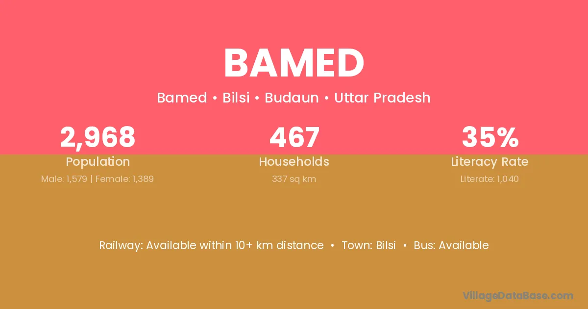 Bamed village is located in the Bilsi Tehsil of the Budaun district in Uttar Pradesh .