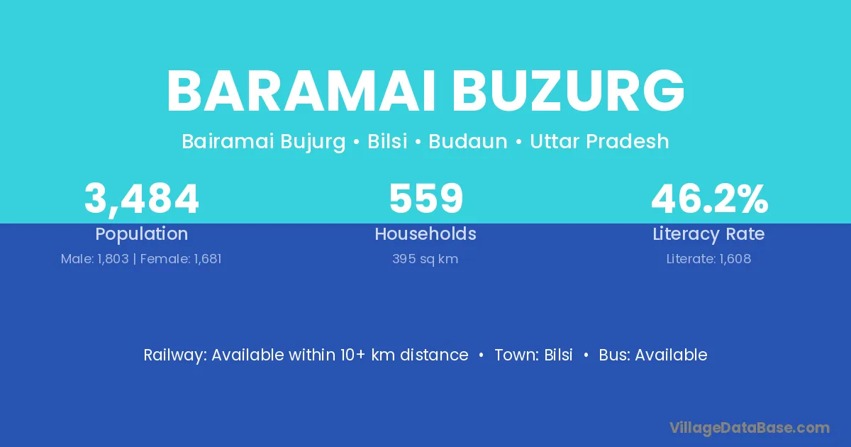 Baramai Buzurg village has a total population of 3,484 people, of which 1,803 are males and 1,681 are females.