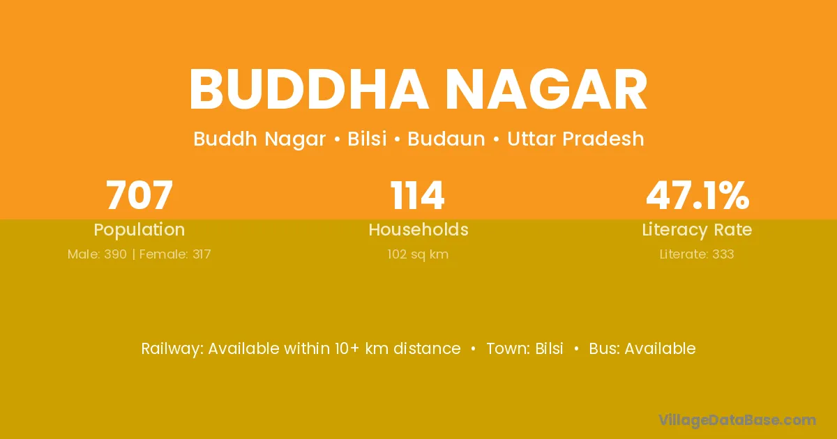 Buddha Nagar village has a total population of 707 people, of which 390 are males and 317 are females.