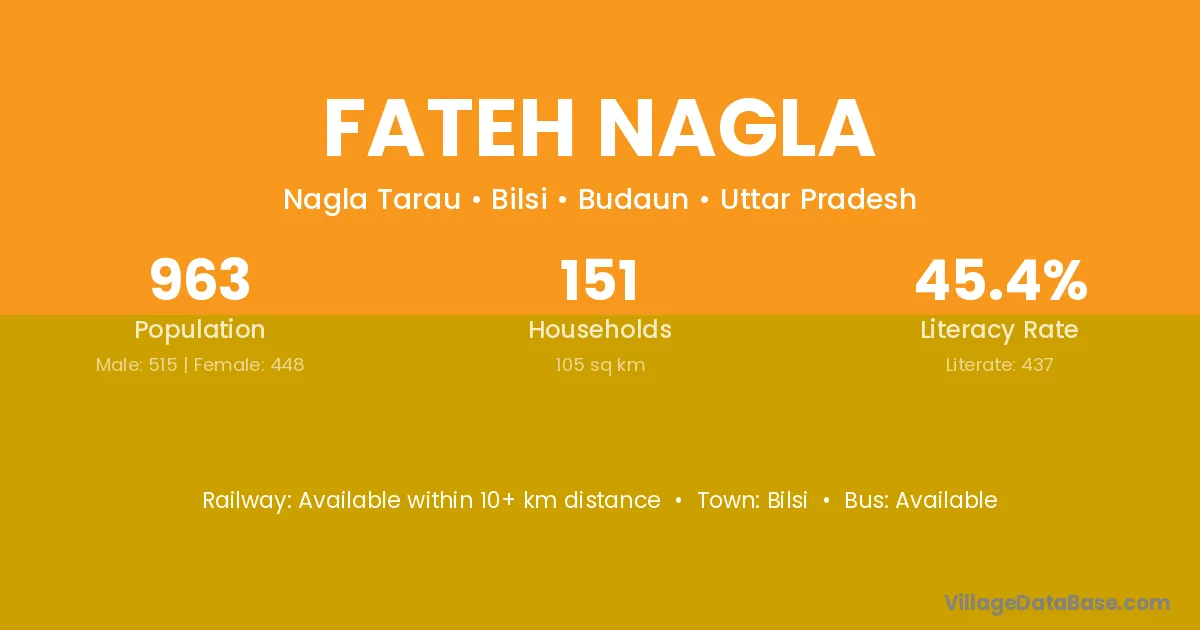 Fateh Nagla village has a total population of 963 people, of which 515 are males and 448 are females.