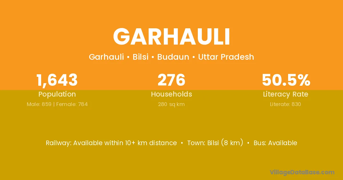 Bilsi (8 km) is the nearest town to Garhauli village for major economic activities and is located approximately 8 km away.