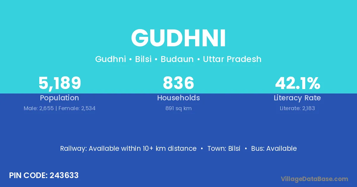 According to Census 2011 information, the village code of Gudhni village is 243633.
