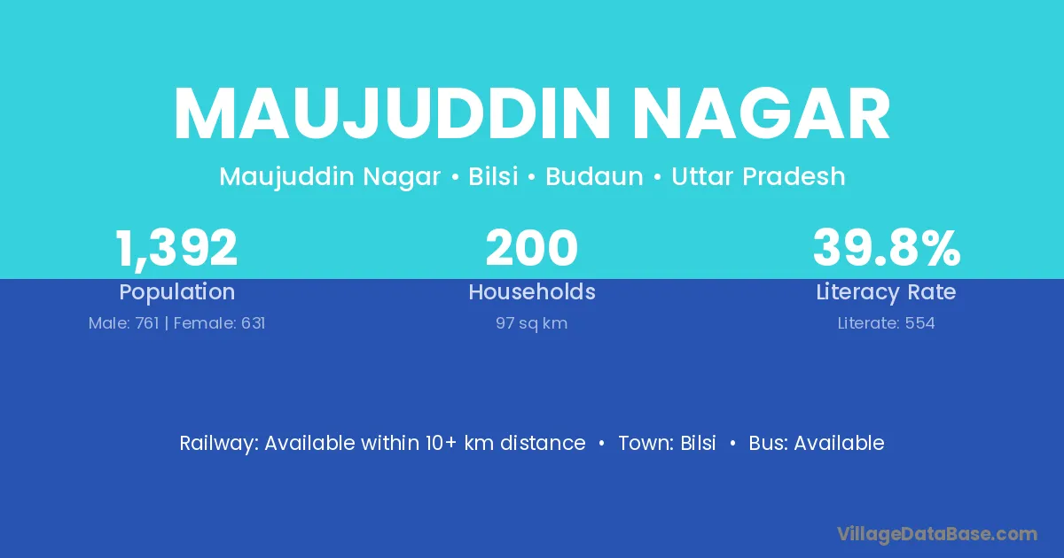 Maujuddin Nagar village has a total population of 1,392 people, of which 761 are males and 631 are females.