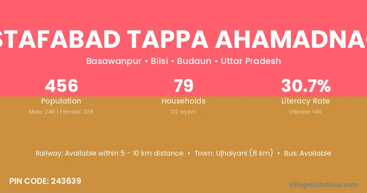 According to Census 2011 information, the village code of Mustafabad Tappa Ahamadnagar village is 243639.