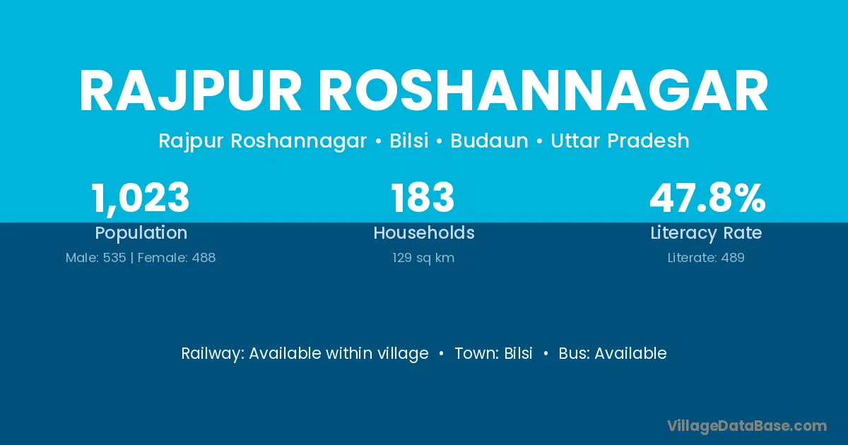 Rajpur Roshannagar village has a total population of 1,023 people, of which 535 are males and 488 are females.