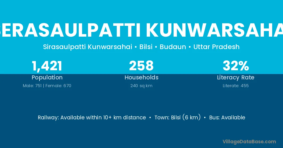 Serasaulpatti Kunwarsahai village has a total population of 1,421 people, of which 751 are males and 670 are females.
