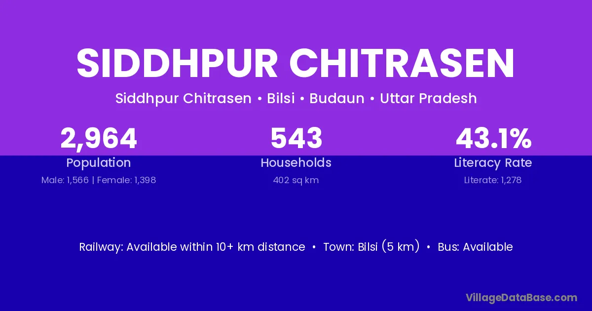 Bilsi (5 km) is the nearest town to Siddhpur Chitrasen village for major economic activities and is located approximately 5 km away.