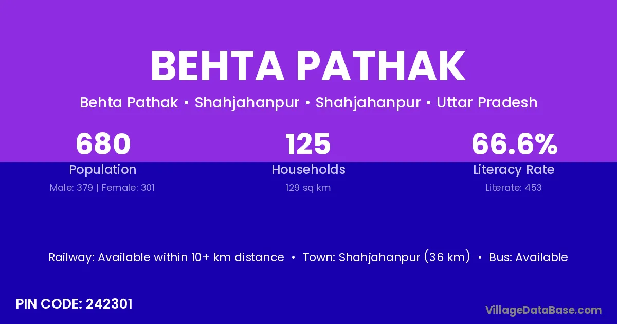 According to Census 2011 information, the village code of Behta Pathak village is 202524.
