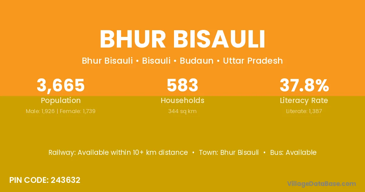 Bhur Bisauli village has a total population of 3,665 people, of which 1,926 are males and 1,739 are females.