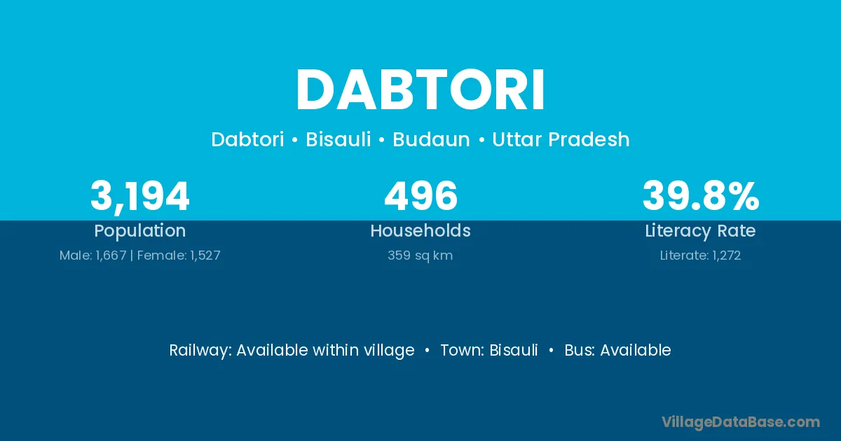 Bisauli is the nearest town to Dabtori village for major economic activities