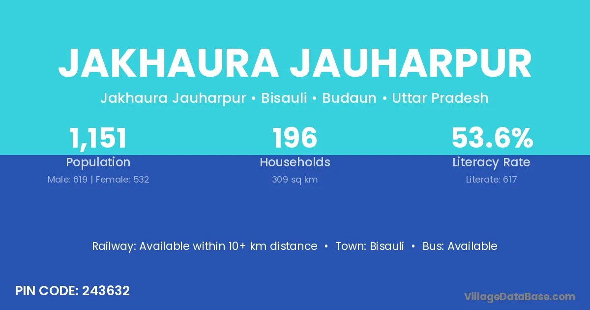 According to Census 2011 information, the village code of Jakhaura Jauharpur village is 243632.