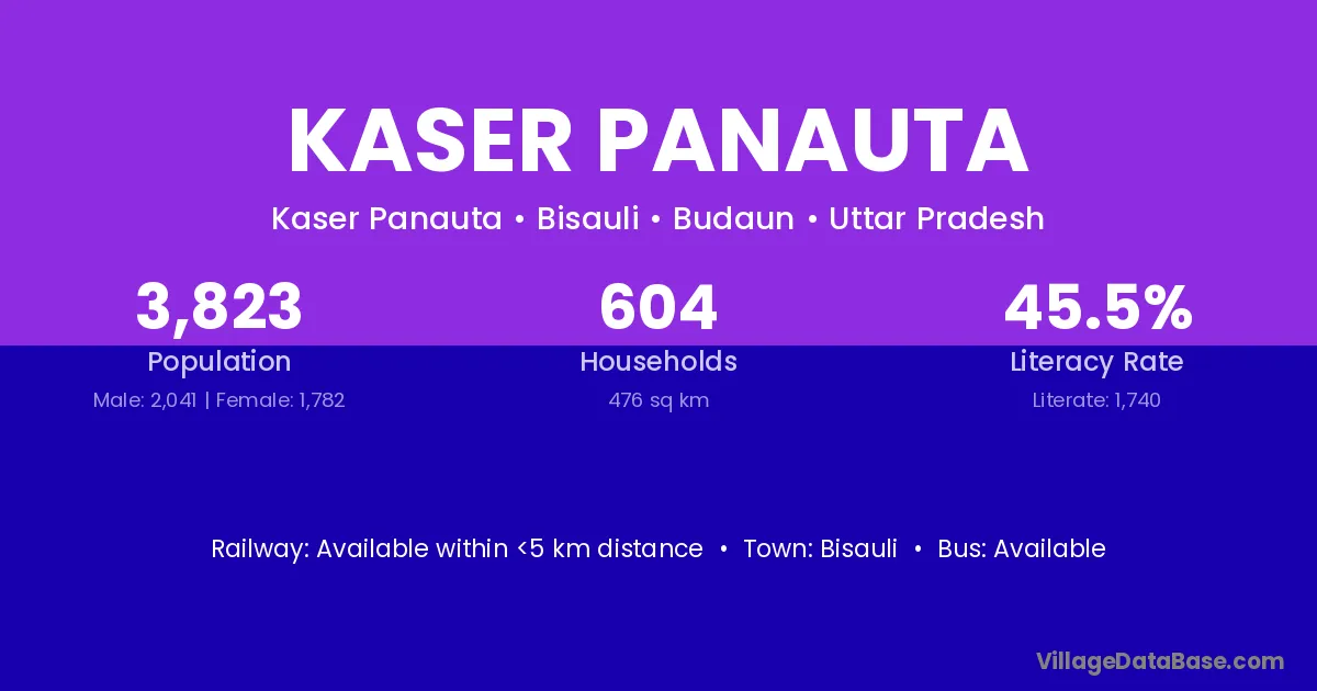 Kaser Panauta village has a total population of 3,823 people, of which 2,041 are males and 1,782 are females.