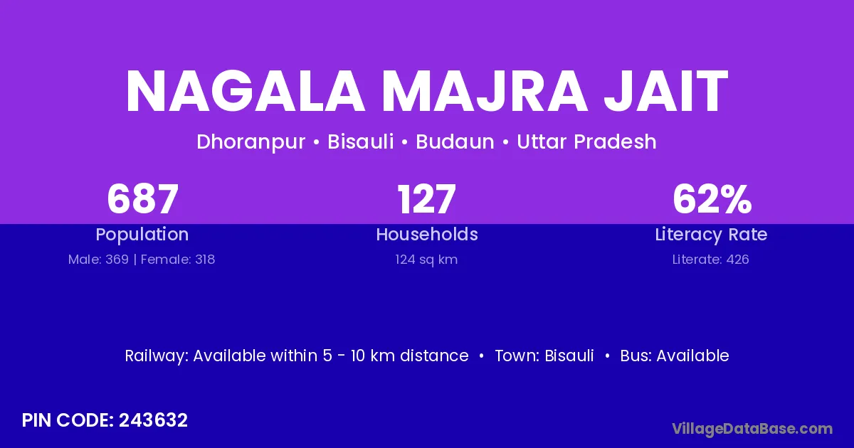 Nagala Majra Jait village has a total population of 687 people, of which 369 are males and 318 are females.