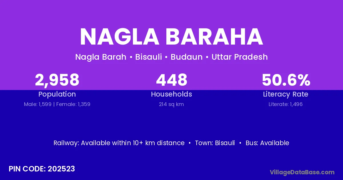 There are approximately 448 households in Nagla Baraha village.