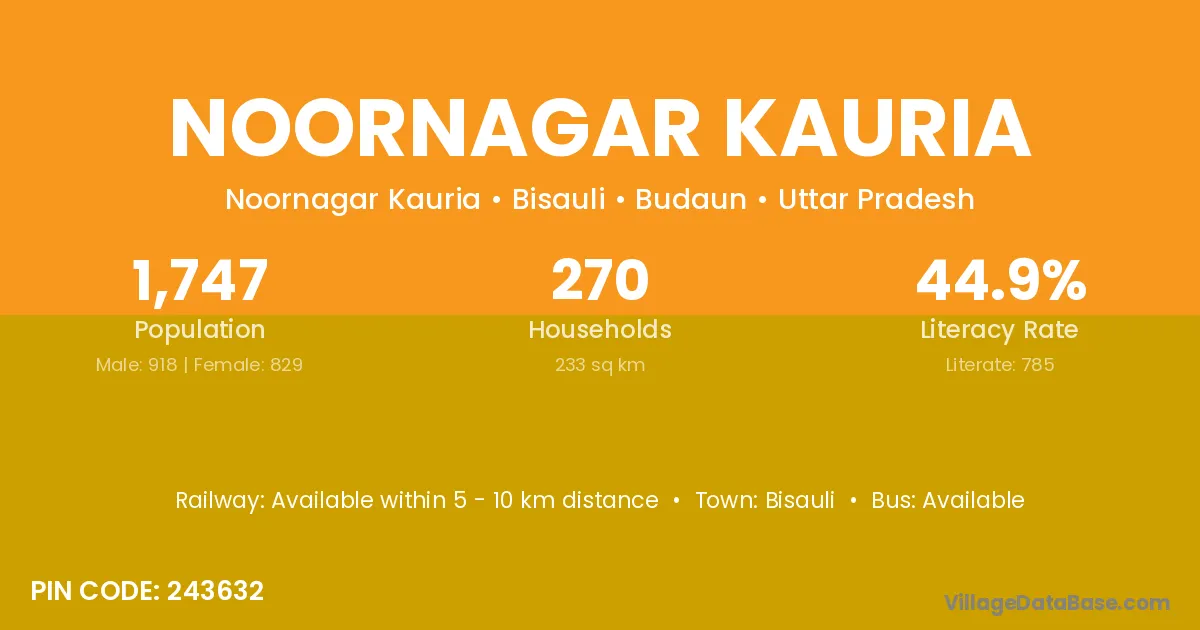 Bisauli is the nearest town to Noornagar Kauria village for major economic activities
