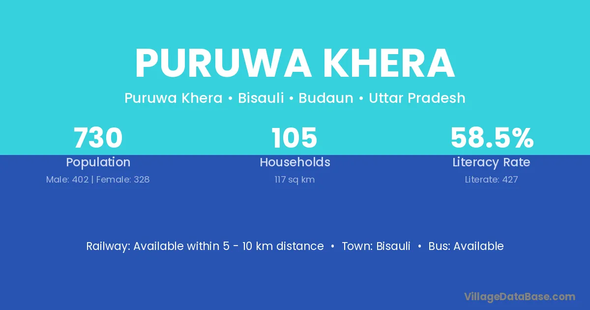 Bisauli is the nearest town to Puruwa Khera village for major economic activities