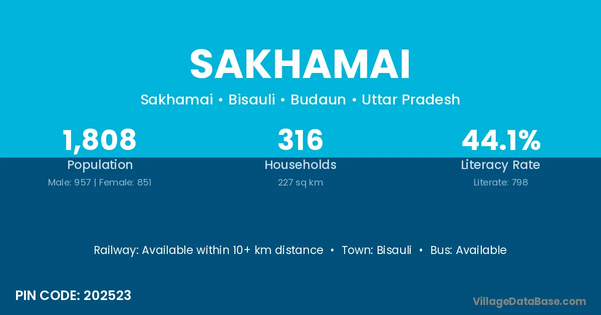Bisauli is the nearest town to Sakhamai village for major economic activities