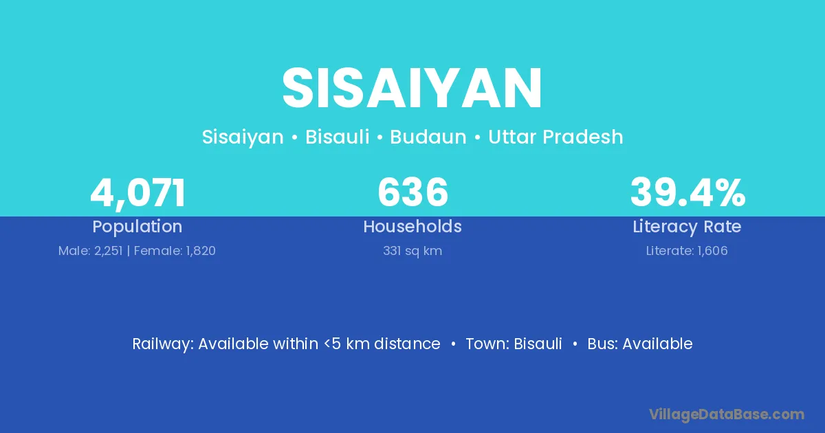 Bisauli is the nearest town to Sisaiyan village for major economic activities