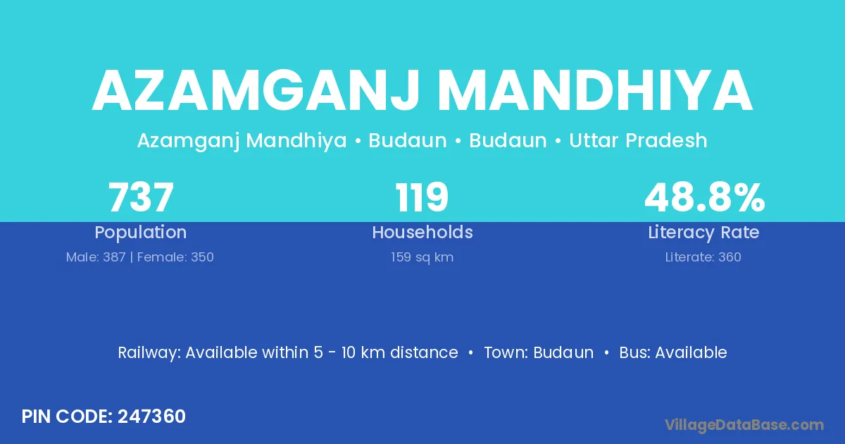 Budaun is the nearest town to Azamganj Mandhiya village for major economic activities