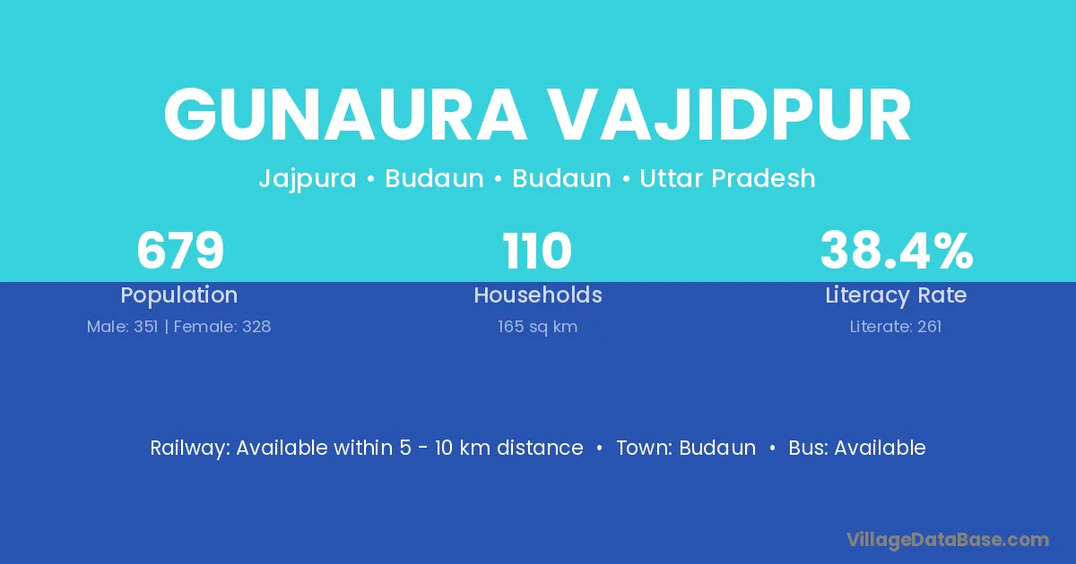 Gunaura Vajidpur village has a total population of 679 people, of which 351 are males and 328 are females.