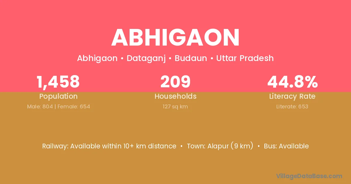 Abhigaon village is located in the Dataganj Tehsil of the Budaun district in Uttar Pradesh .