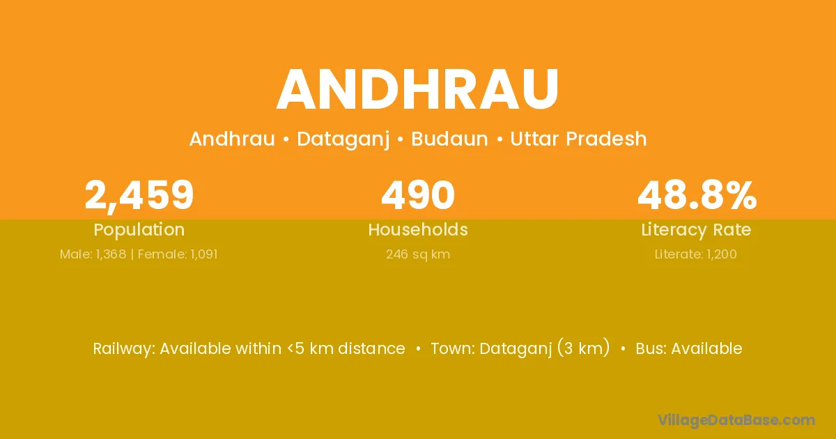 Dataganj (3 km) is the nearest town to Andhrau village for major economic activities and is located approximately 3 km away.
