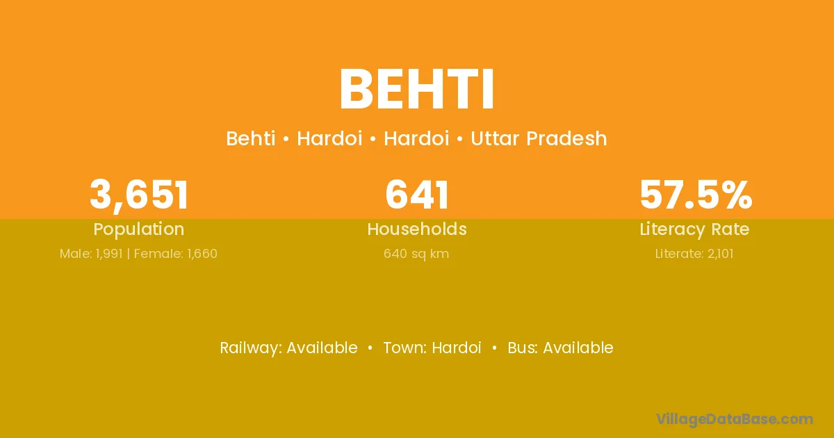 Ushait (4 km) is the nearest town to Behti village for major economic activities and is located approximately 4 km away.