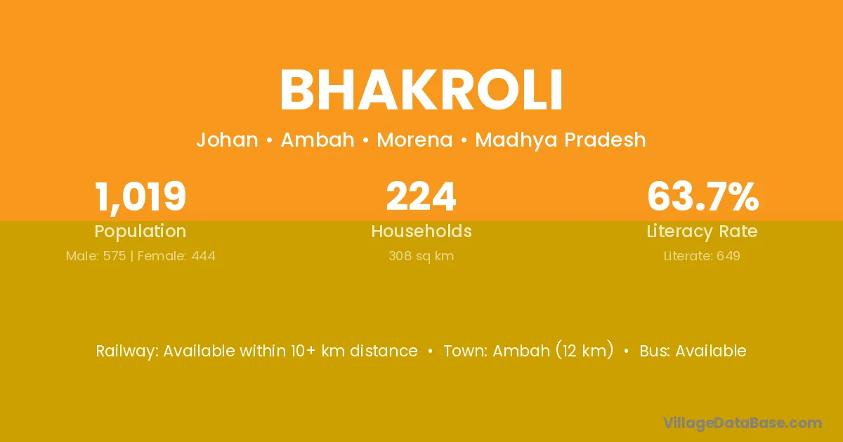 Bhakroli village has a total population of 1,356 people, of which 761 are males and 595 are females.