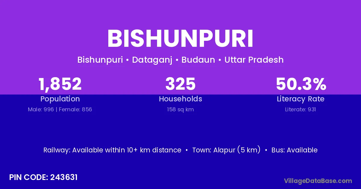 Alapur (5 km) is the nearest town to Bishunpuri village for major economic activities and is located approximately 5 km away.