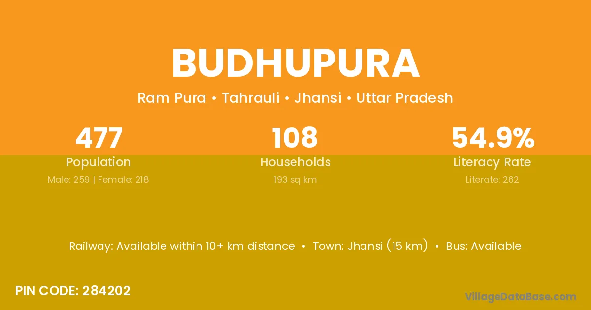 Budaun (30 km) is the nearest town to Budhupura village for major economic activities and is located approximately 30 km away.