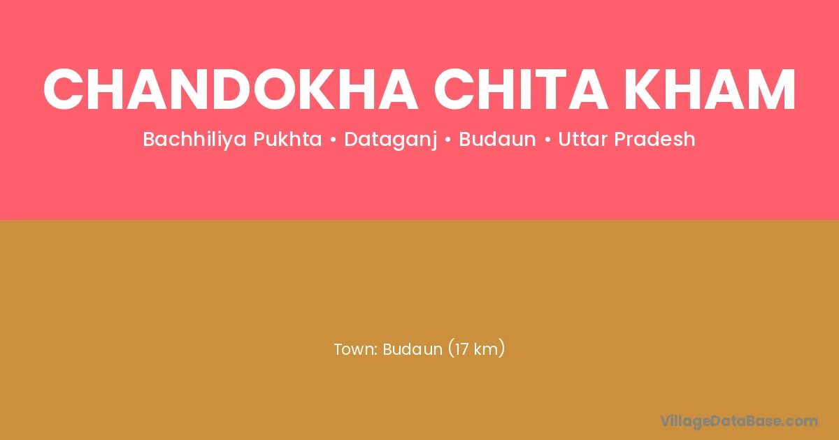 Budaun (17 km) is the nearest town to Chandokha Chita Kham village for major economic activities and is located approximately 17 km away.