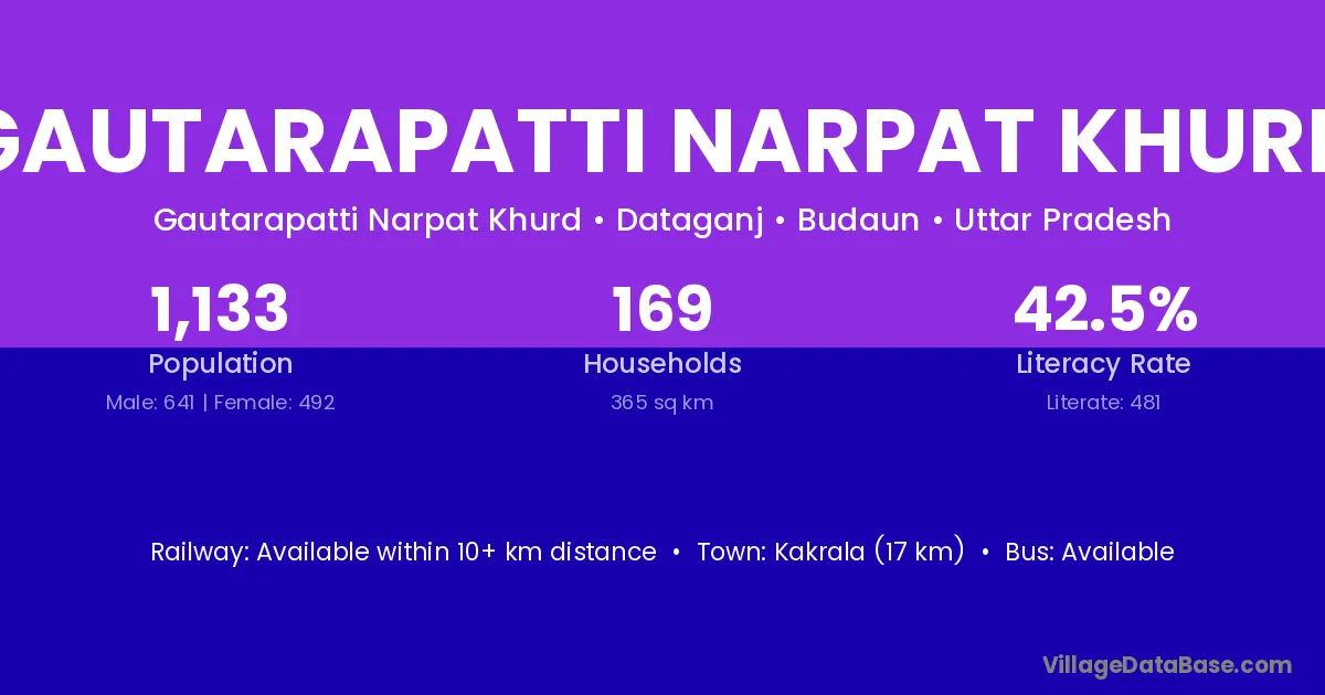 Kakrala (17 km) is the nearest town to Gautarapatti Narpat Khurd village for major economic activities and is located approximately 17 km away.