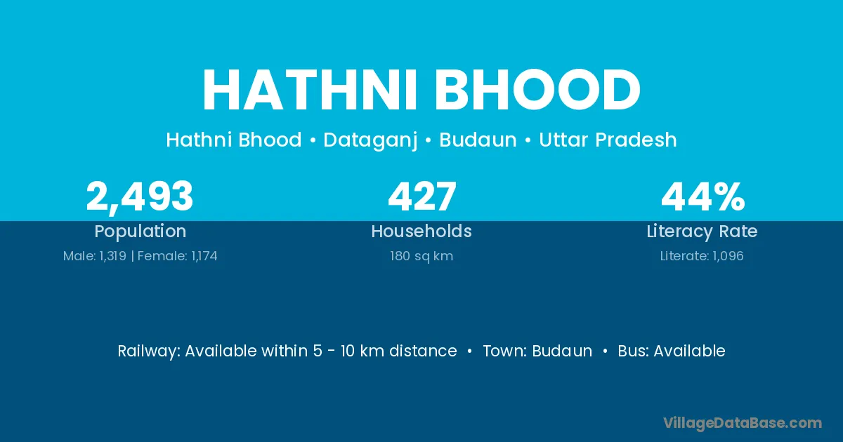 Budaun is the nearest town to Hathni Bhood village for major economic activities