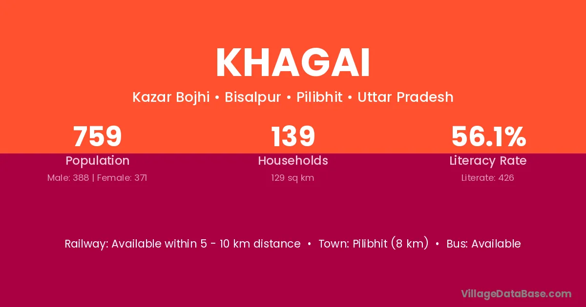 Budaun (30 km) is the nearest town to Khagai village for major economic activities and is located approximately 30 km away.