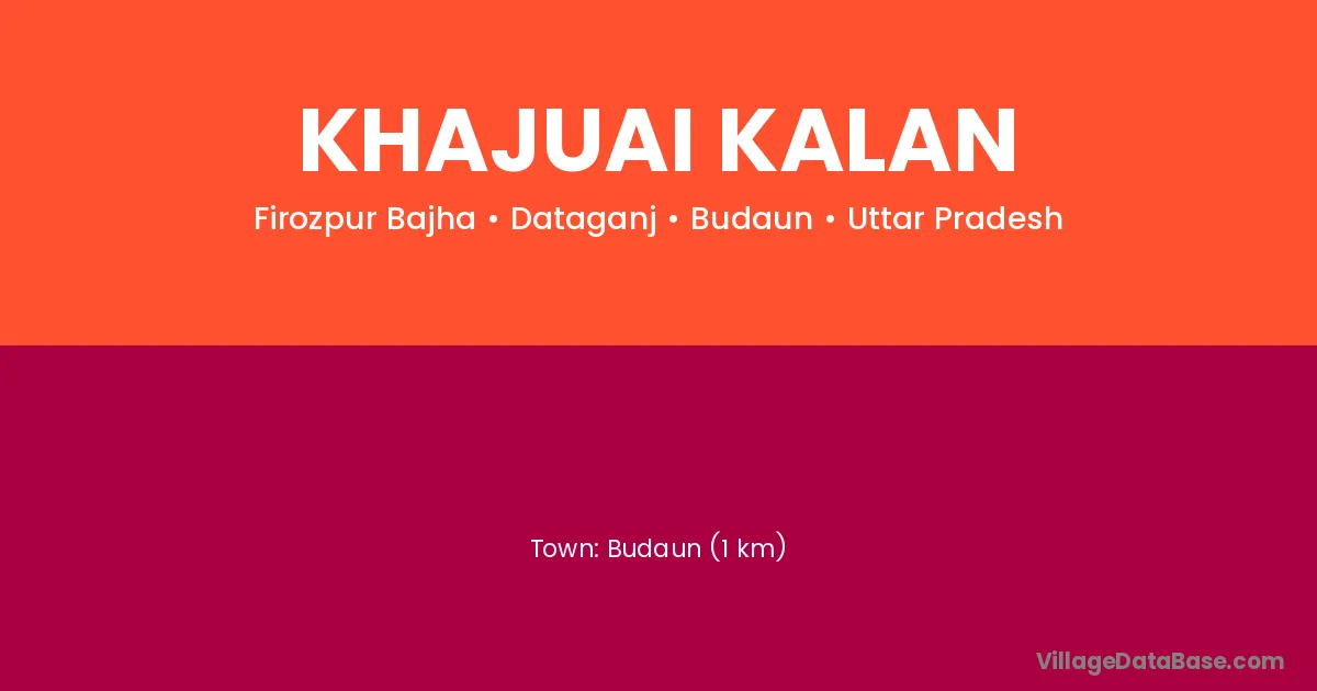 Budaun (1 km) is the nearest town to Khajuai Kalan village for major economic activities and is located approximately 1 km away.