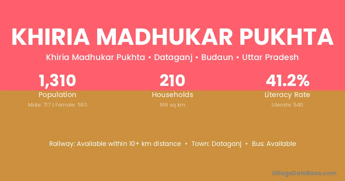 Khiria Madhukar Pukhta village has a total population of 1,310 people, of which 717 are males and 593 are females.
