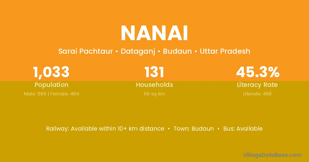 Nanai village has a total population of 1,033 people, of which 569 are males and 464 are females.
