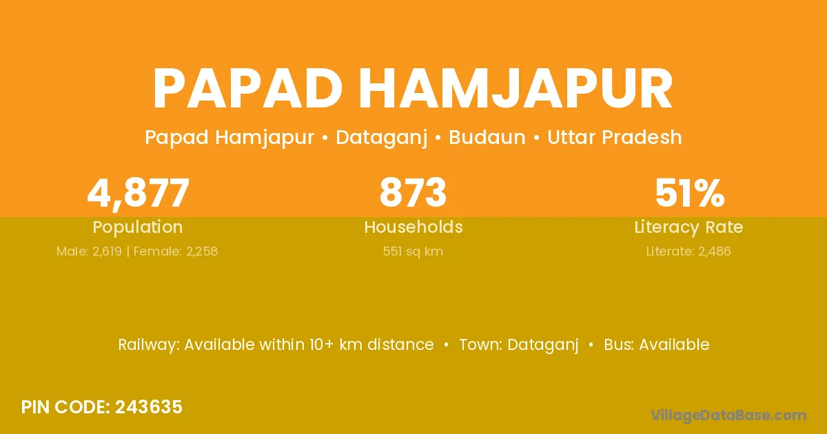 According to Census 2011 information, the village code of Papad Hamjapur village is 243635.
