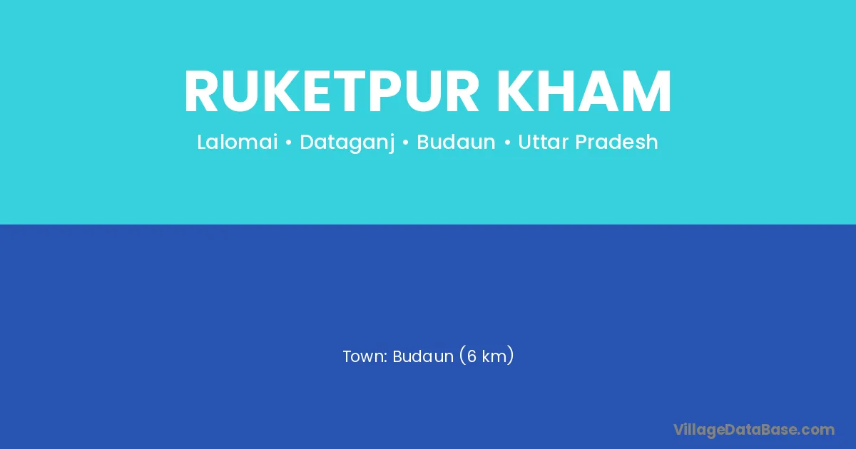 Budaun (6 km) is the nearest town to Ruketpur Kham village for major economic activities and is located approximately 6 km away.