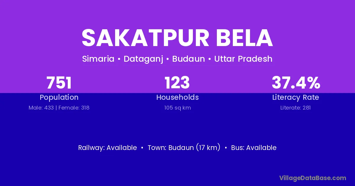 Budaun (17 km) is the nearest town to Sakatpur Bela village for major economic activities and is located approximately 17 km away.