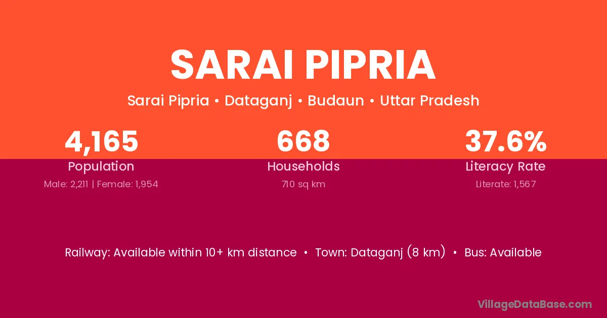 Dataganj (8 km) is the nearest town to Sarai Pipria village for major economic activities and is located approximately 8 km away.