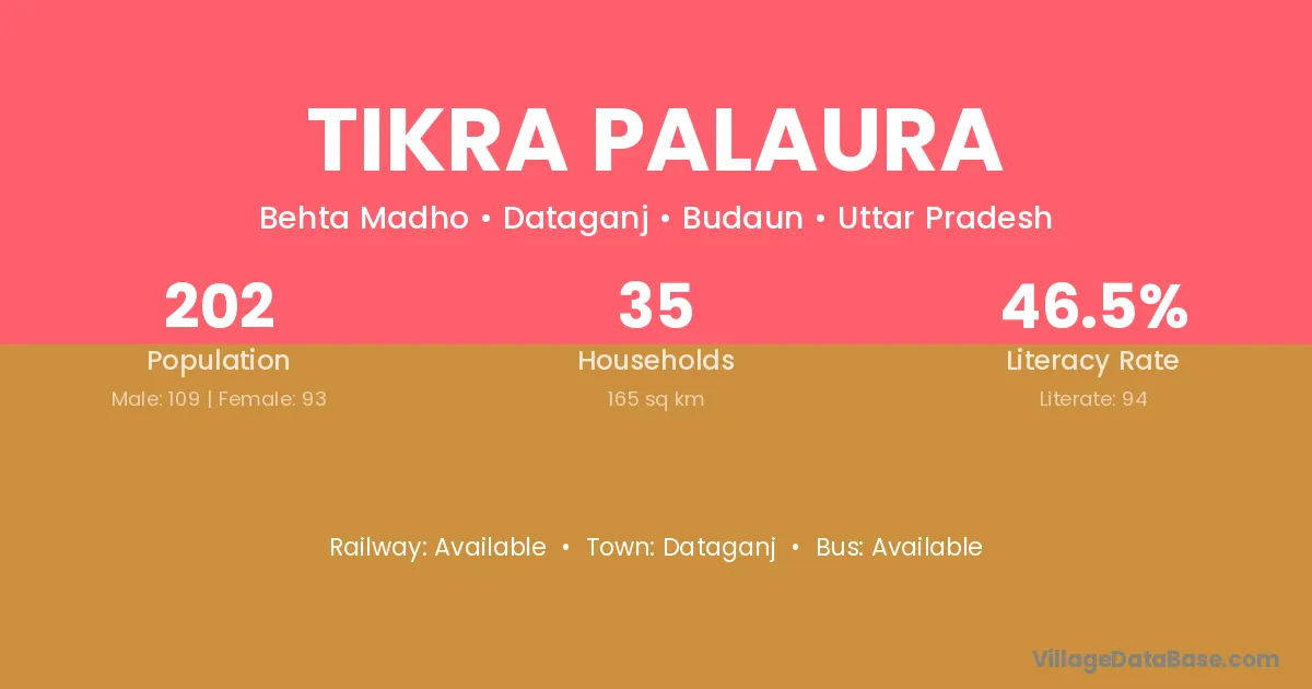 Tikra Palaura village has a total population of 202 people, of which 109 are males and 93 are females.