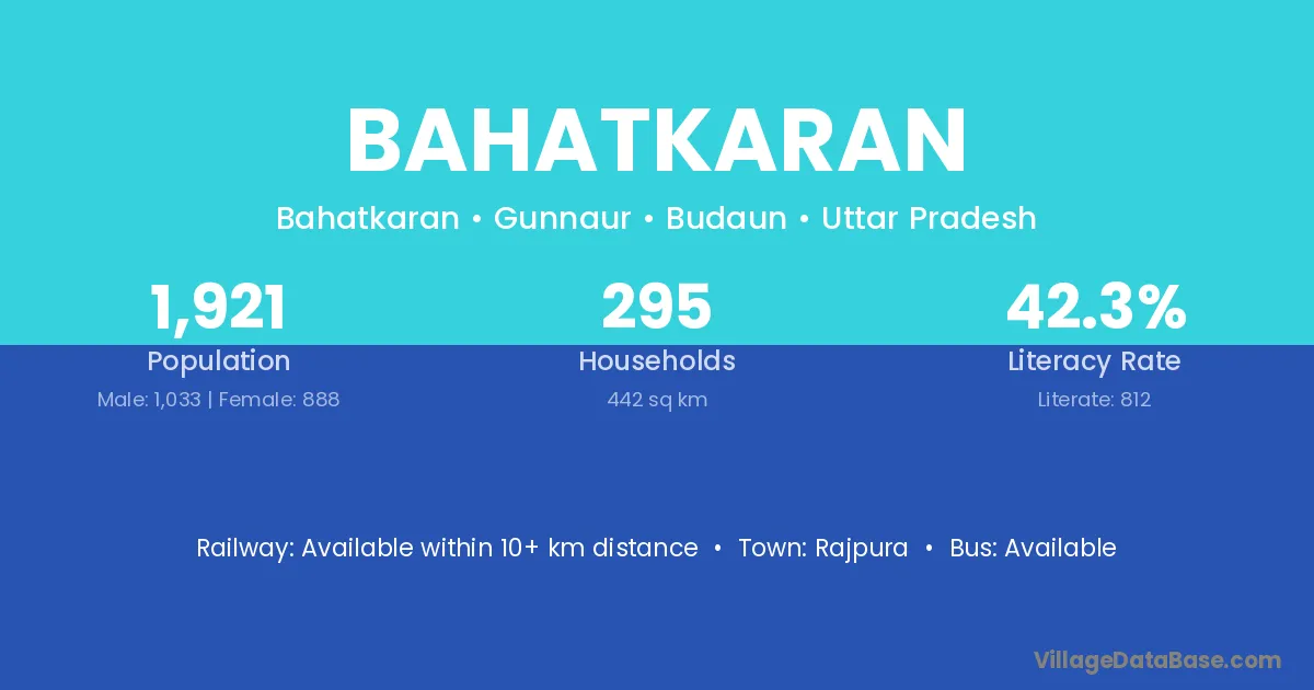 Bahatkaran village has a total population of 1,921 people, of which 1,033 are males and 888 are females.